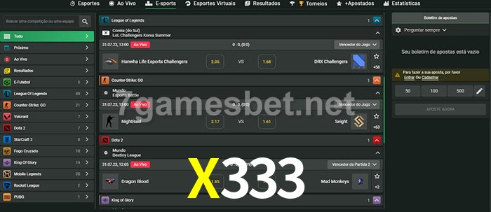 A aposta X333 oferece aos jogadores a experiência mais conveniente de apostas em eSports!